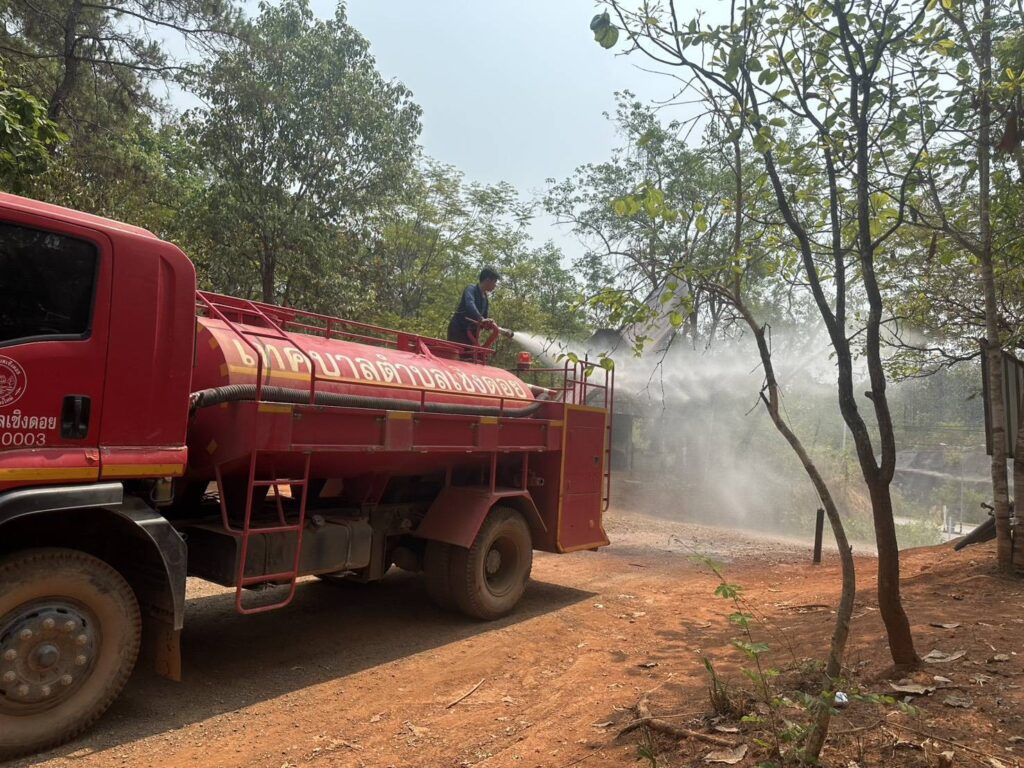 เชียงใหม่-เทศบาลตำบลเชิงดอยส่งน้ำพร้อมพรมน้ำ ลดฝุ่นบนด่านไฟป่าเพื่อสร้างสภาพแวดล้อมที่เหมาะสมในการป้...